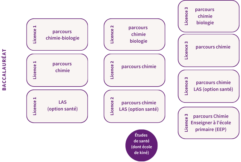 - Un baccalauréat général, avec les spécialités physique-chimie et mathématiques, est conseillé pour intégrer un parcours L1 chimie. Les lycéen·nes n’ayant pas suivi la spécialité mathématiques en terminale bénéficieront d’un parcours accompagné dans cette matière.